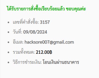 1. หลังจากทำการสั่งซื้อใบเสร็จถูกส่งไปทางอีเมลที่ระบุ (อาจจะอยู่ในเมลขยะ)