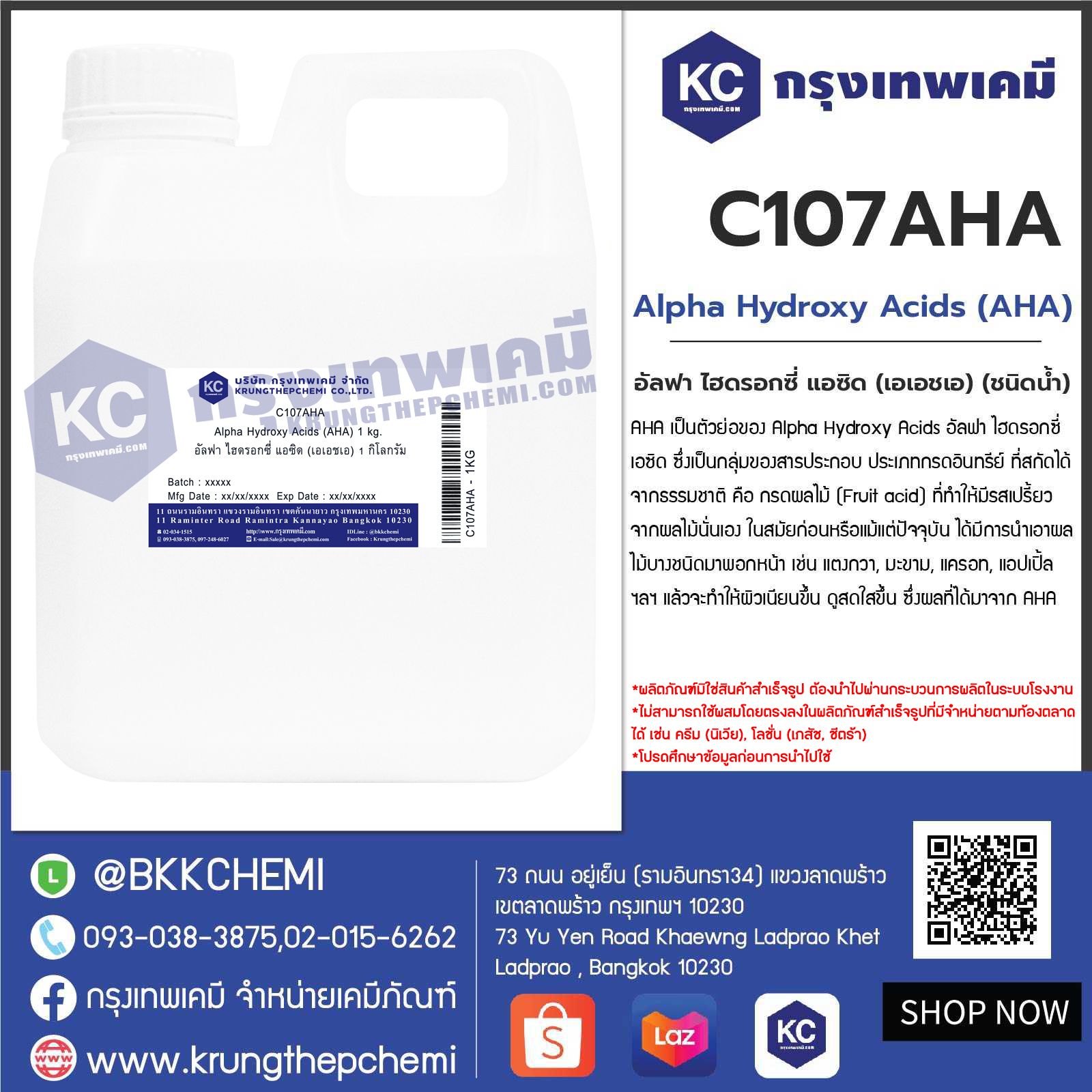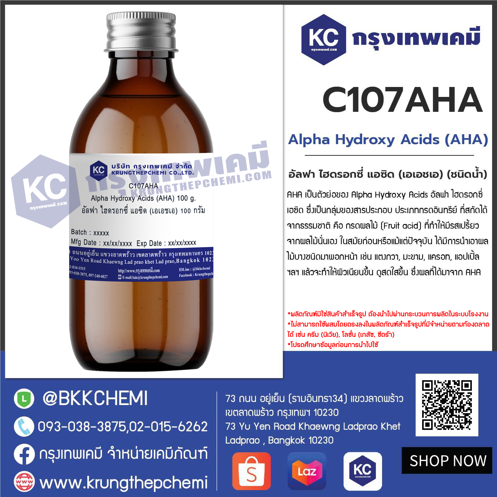 C107AHA Alpha Hydroxy Acids (AHA) : อัลฟา ไฮดรอกซี่ แอซิด (เอเอชเอ) (ชนิดน้ำ)