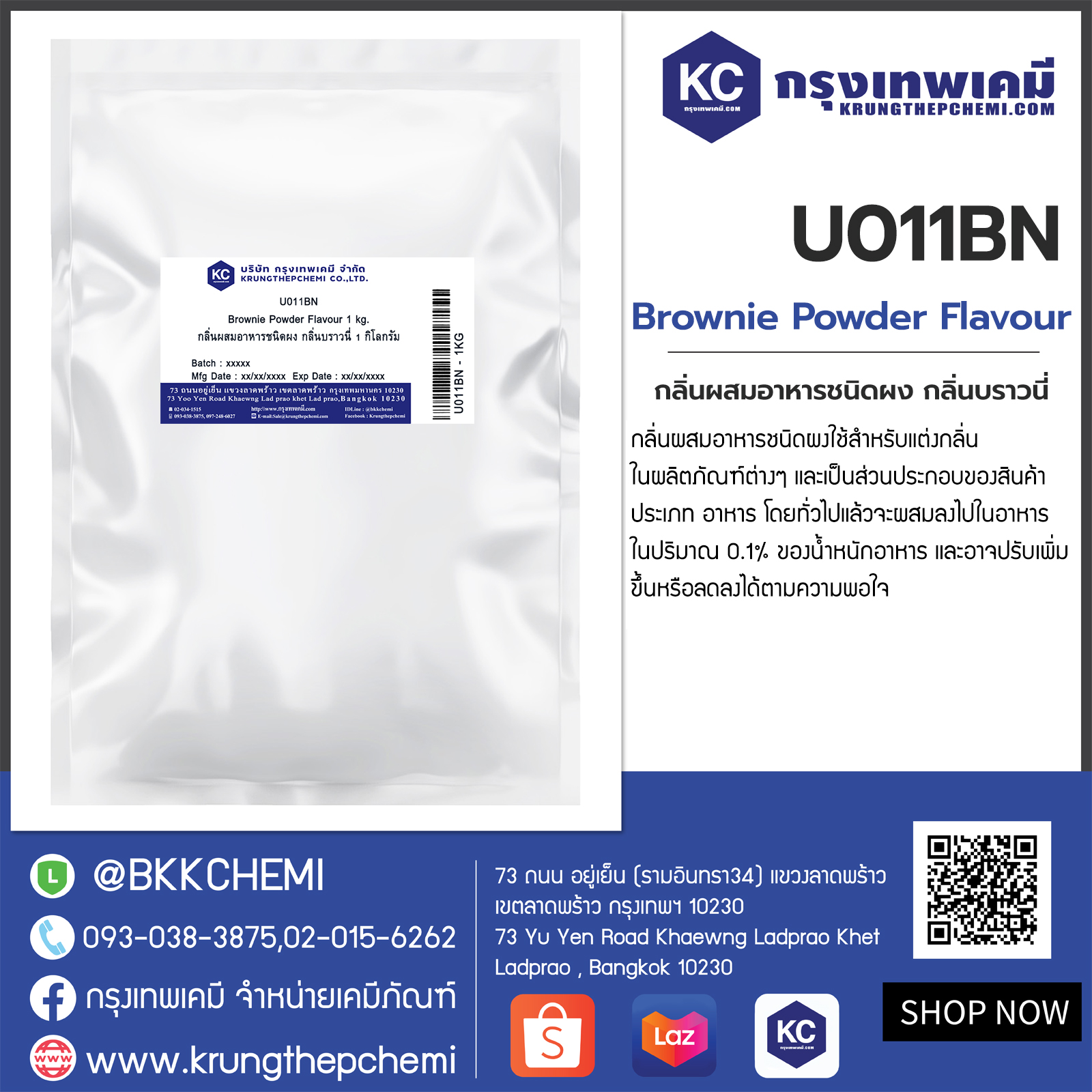 U011BN Brownie Powder Flavour : กลิ่นผสมอาหารชนิดผง กลิ่นบราวนี่