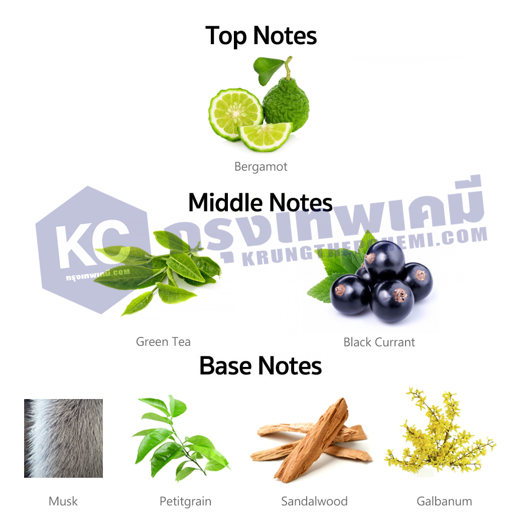 - Middle Notes มอบความหอมนุ่มนวลกับกลิ่น Green Tea และ Black Currant
