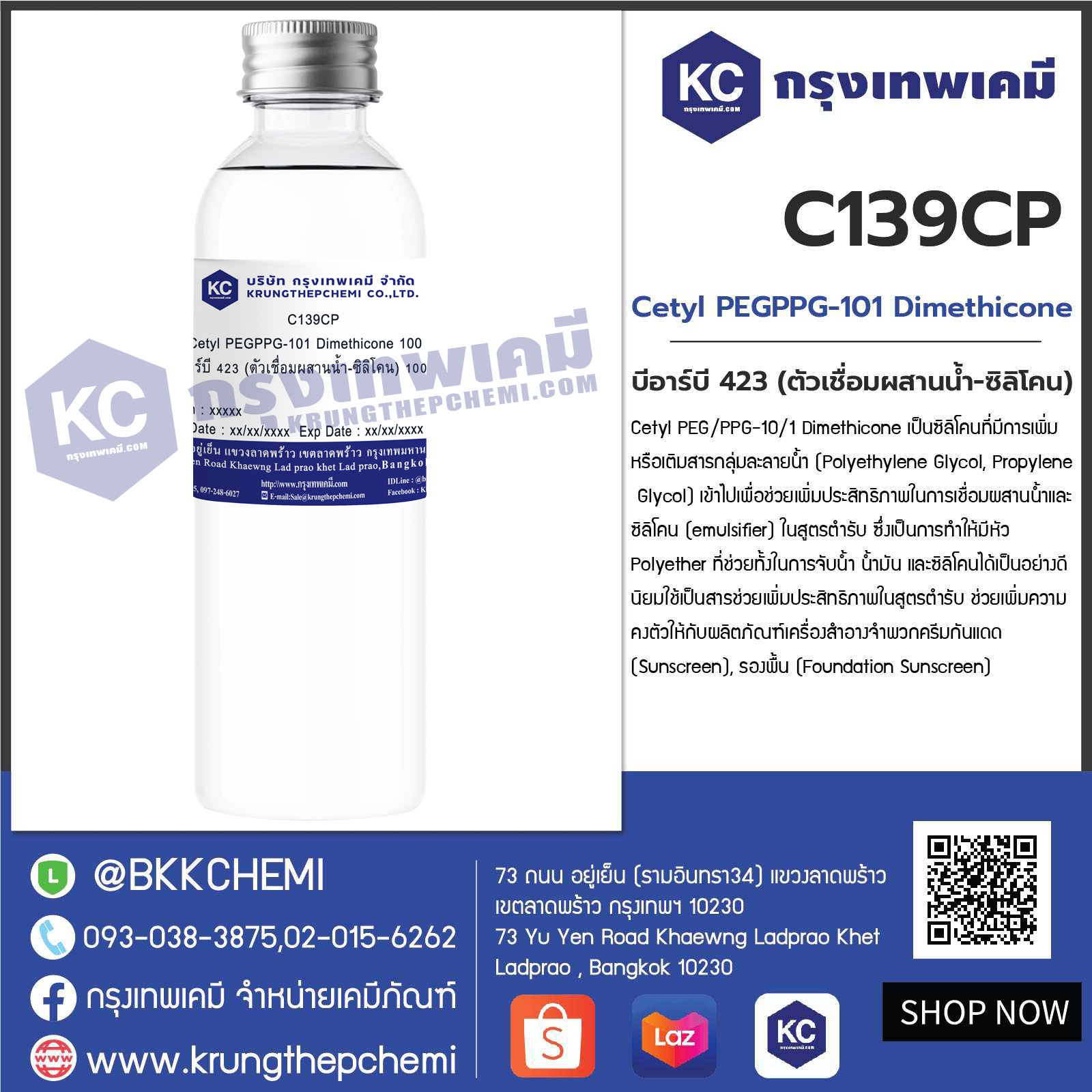 C139CP Cetyl PEGPPG-101 Dimethicone : บีอาร์บี 423 (ตัวเชื่อมผสานน้ำ-ซิลิโคน)