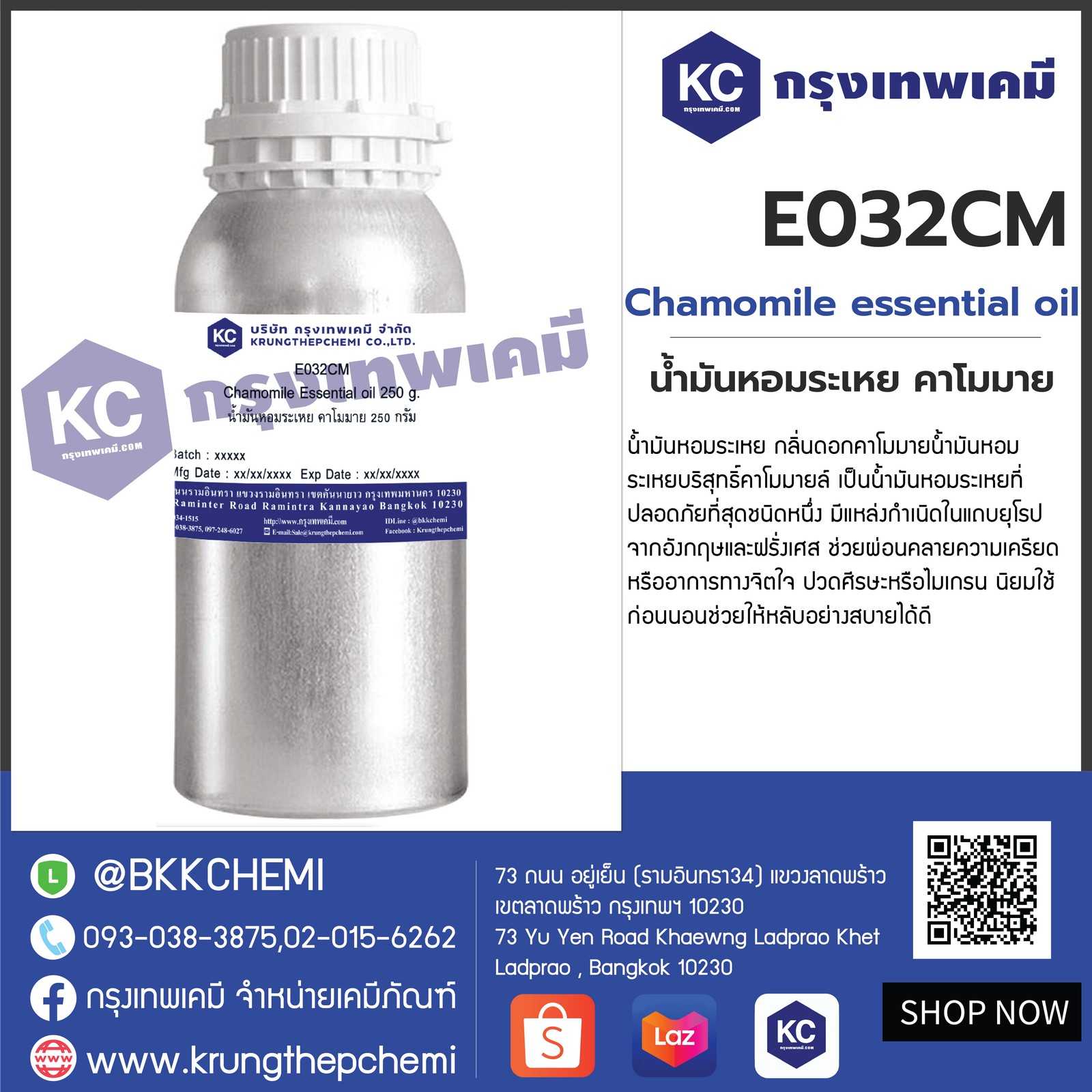 E032CM Chamomile Essential oil : น้ำมันหอมระเหย คาโมมาย