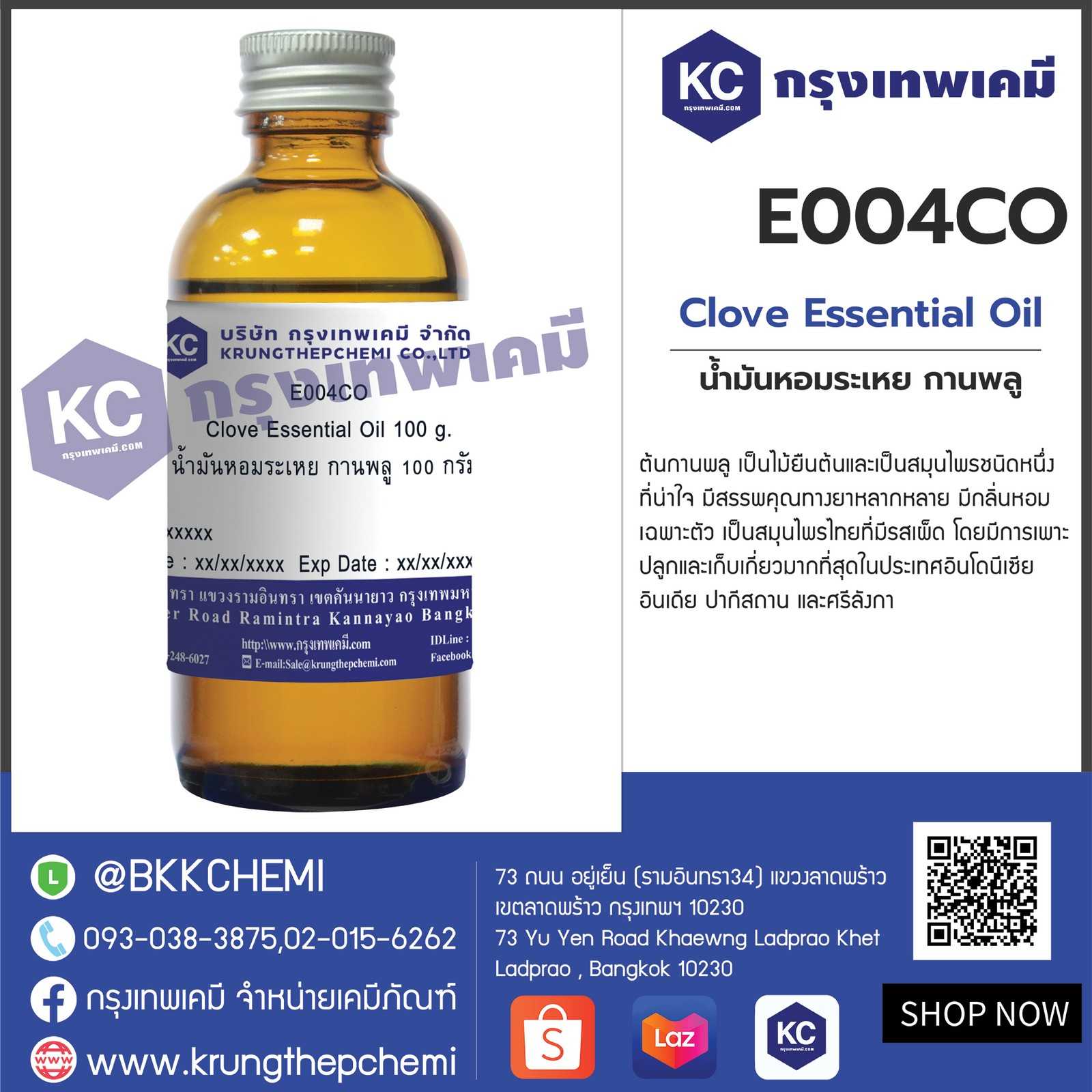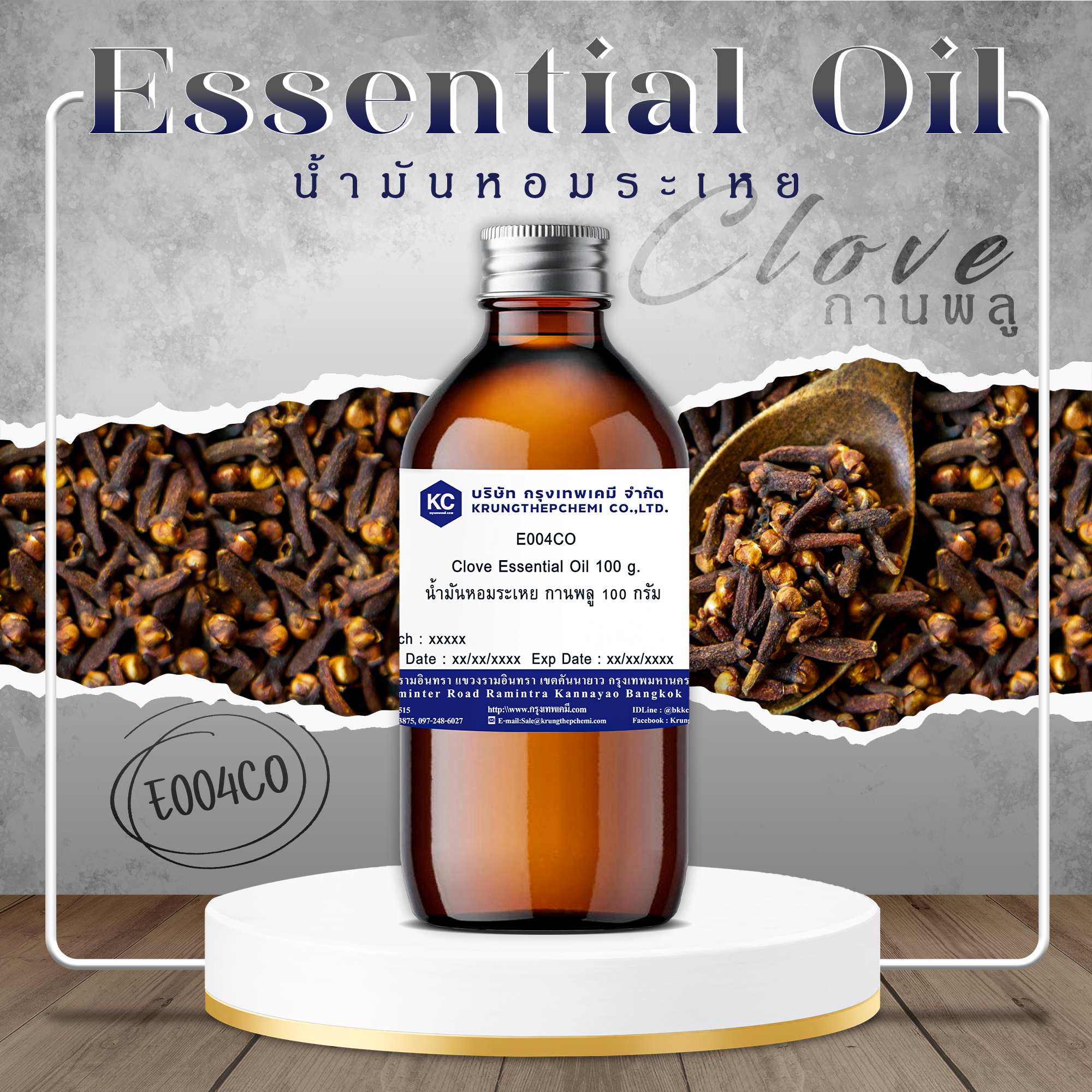 E004CO Clove Essential Oil : น้ำมันหอมระเหย กานพลู