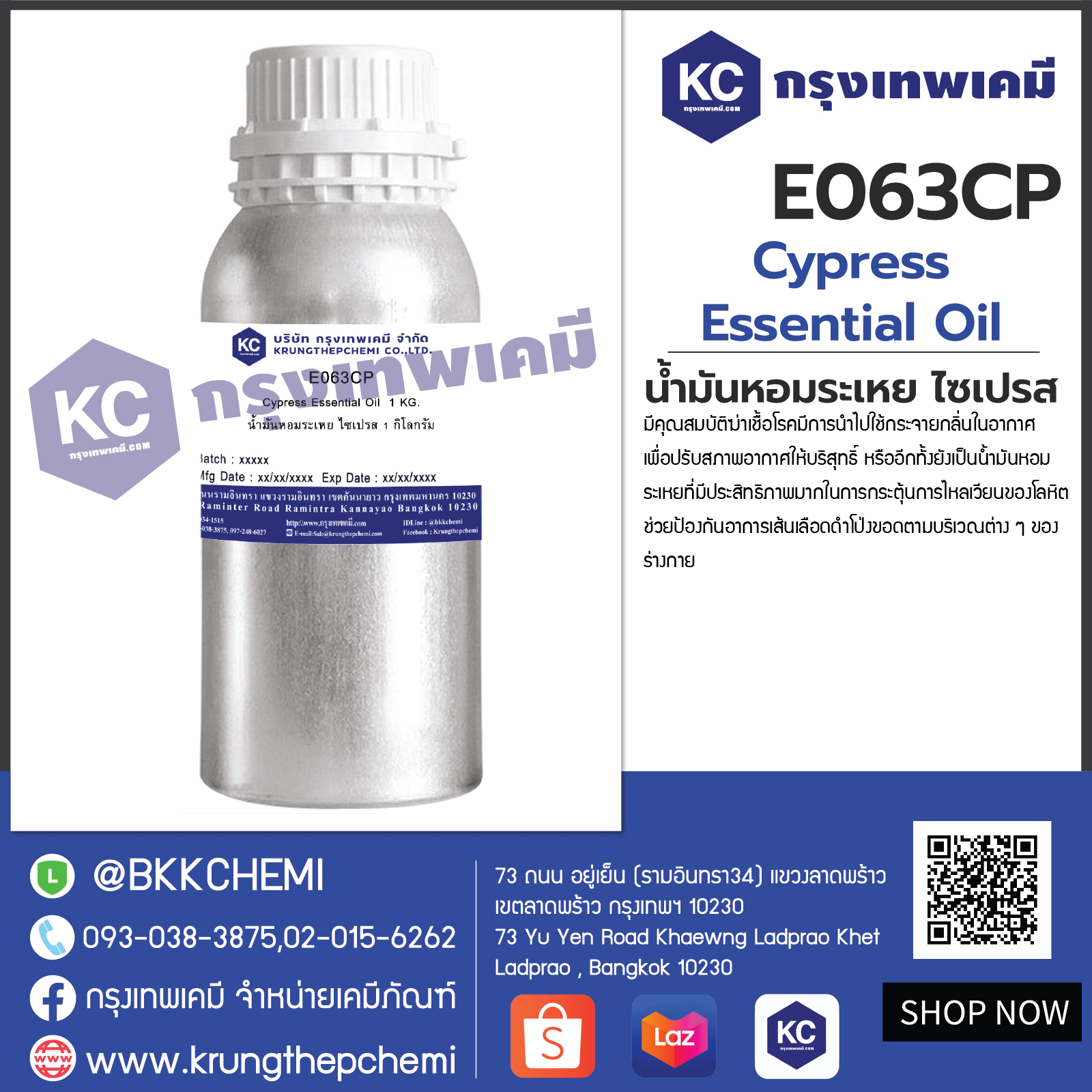 E063CP Cypress Essential Oil : น้ำมันหอมระเหย ไซเปรส