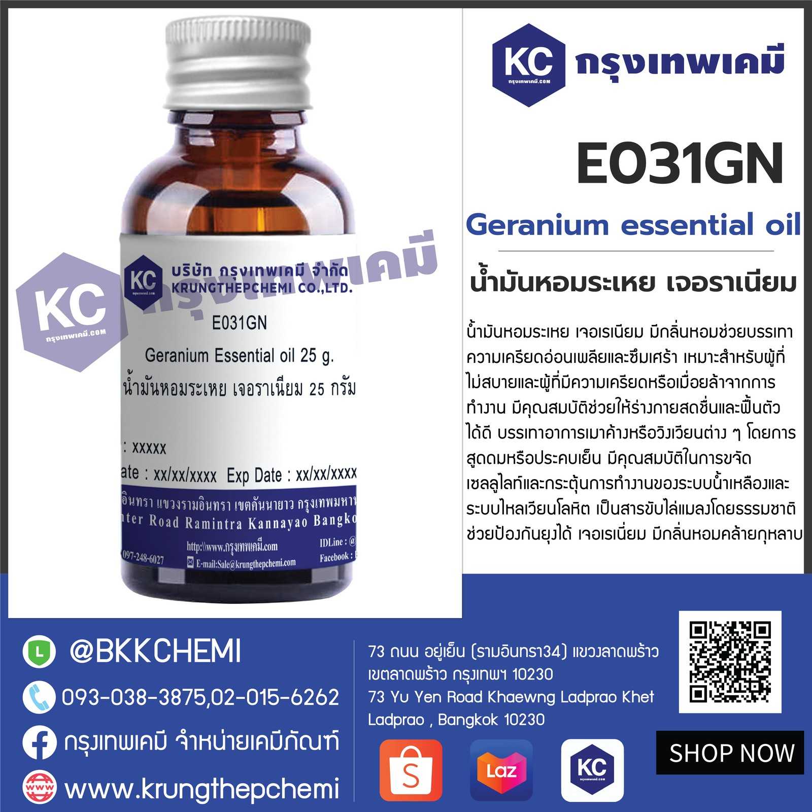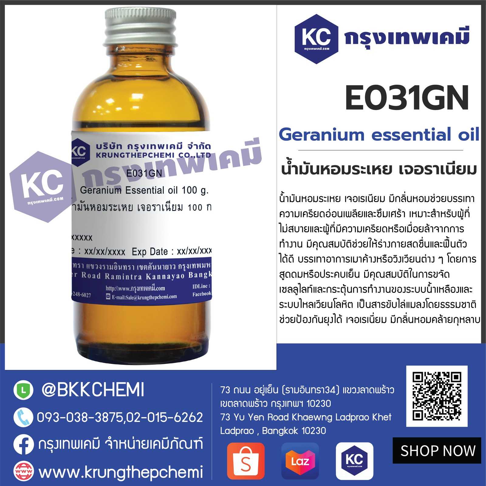 E031GN Geranium Essential oil : น้ำมันหอมระเหย เจอราเนียม