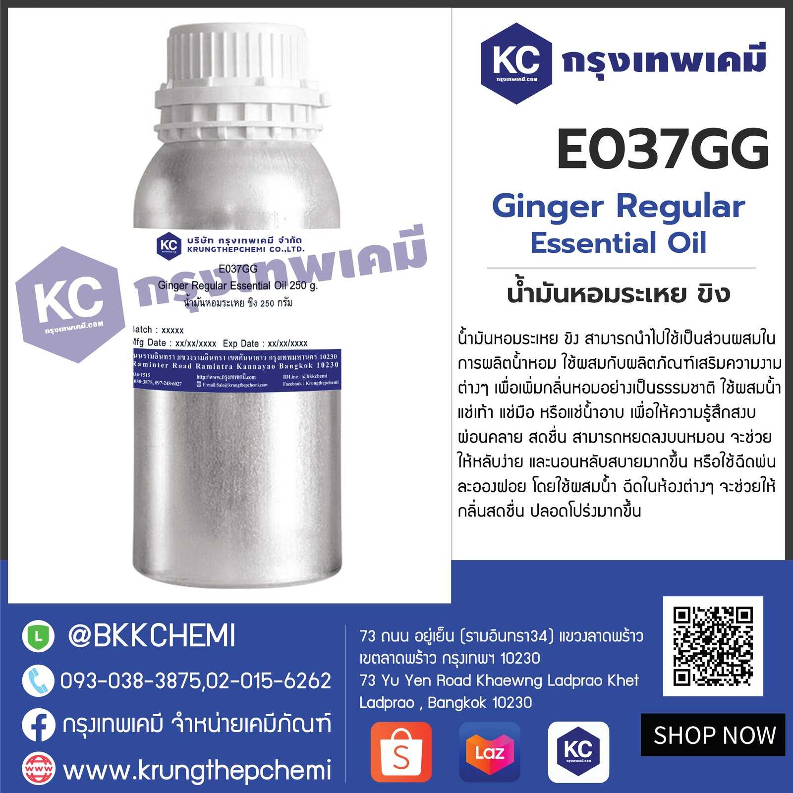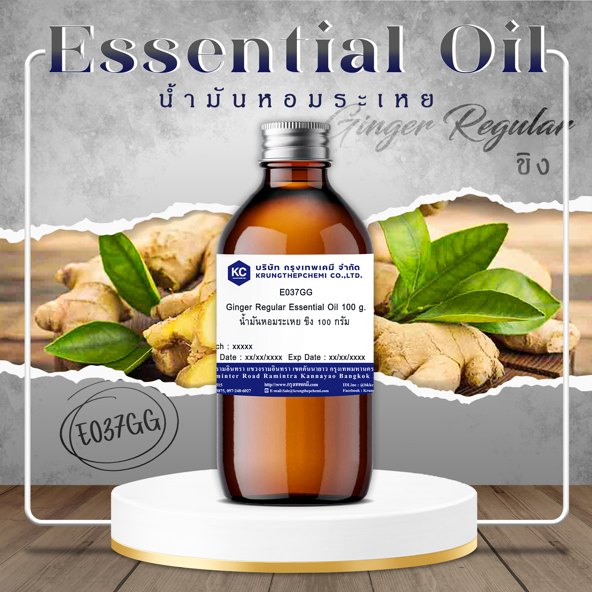 E037GG Ginger Regular Essential Oil : น้ำมันหอมระเหย ขิง
