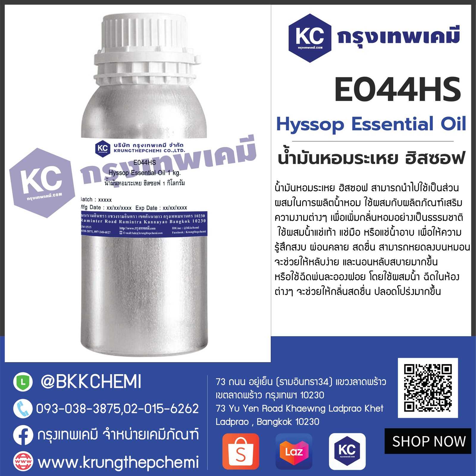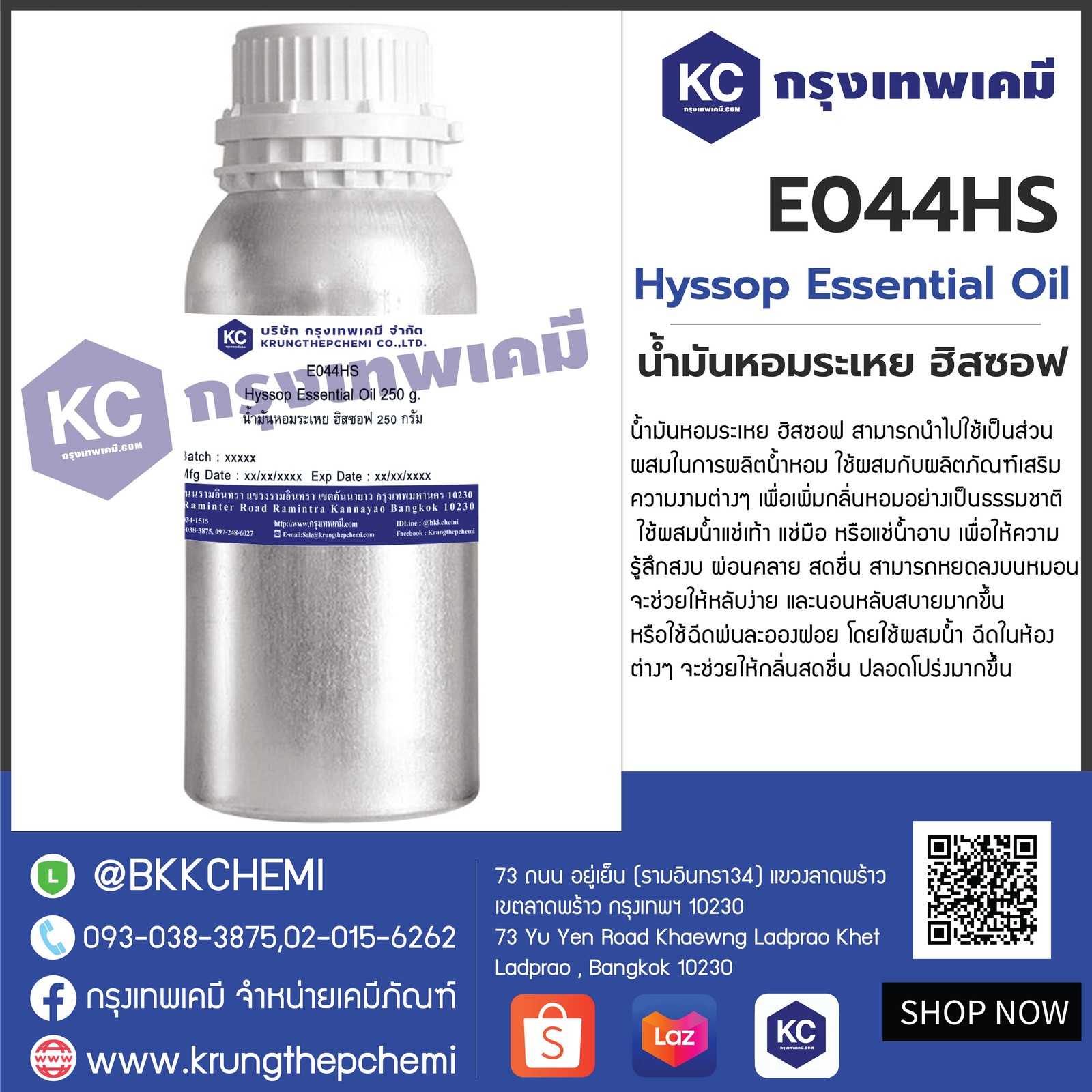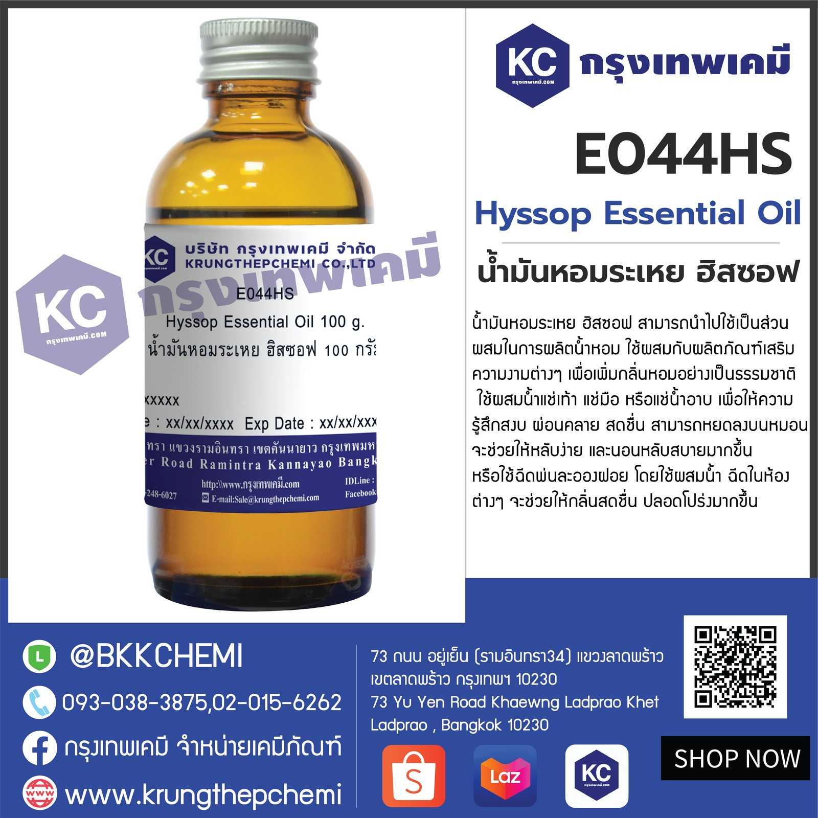 E044HS Hyssop Essential Oil : น้ำมันหอมระเหย ฮิสซอฟ