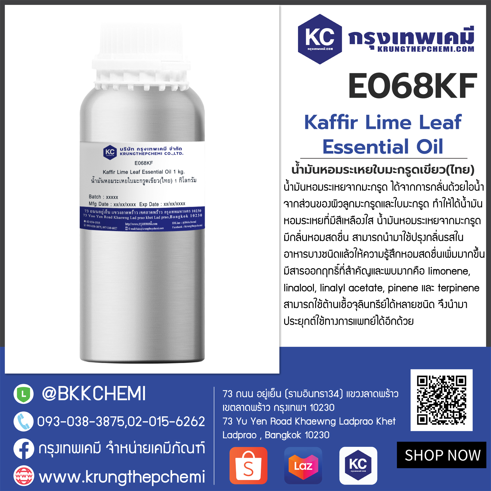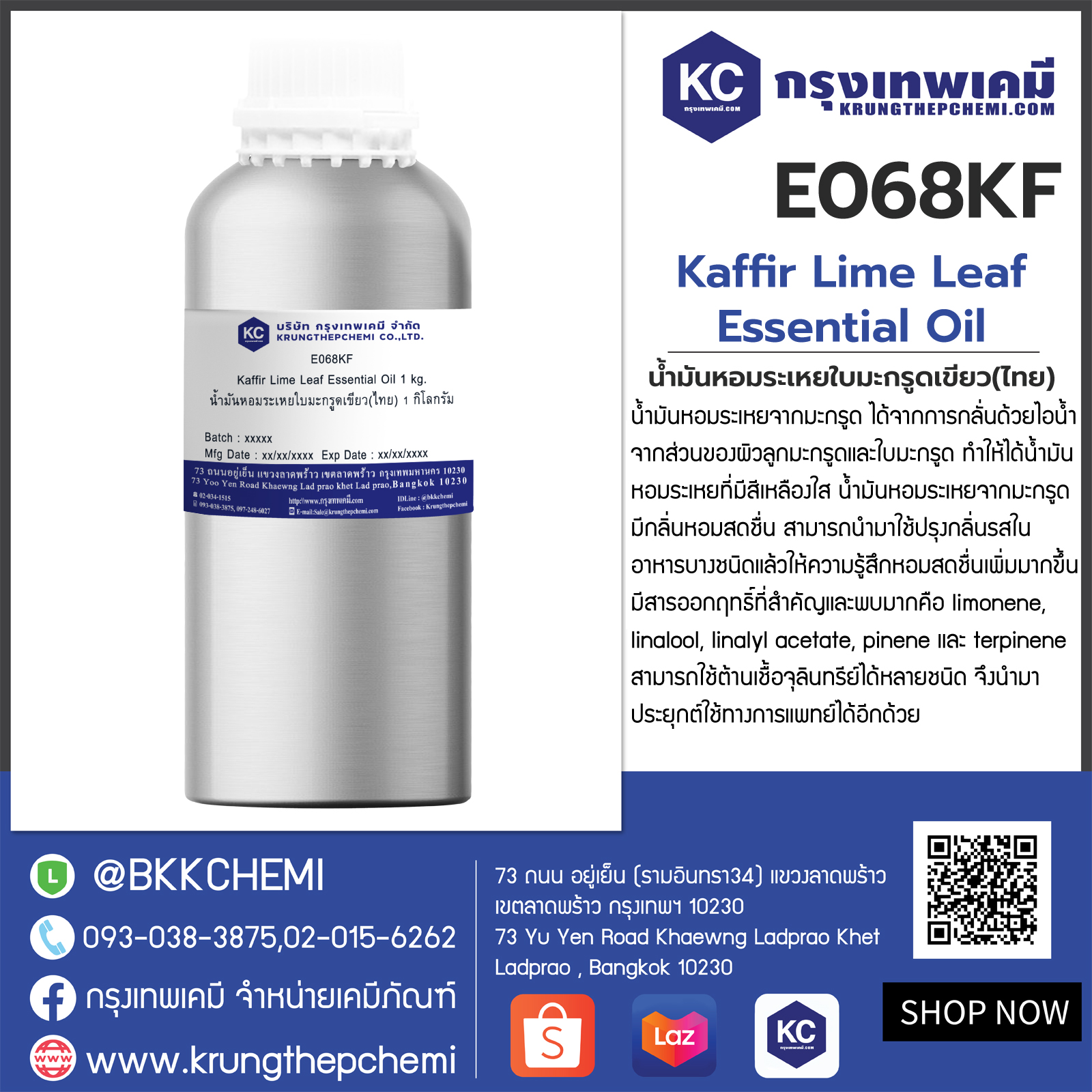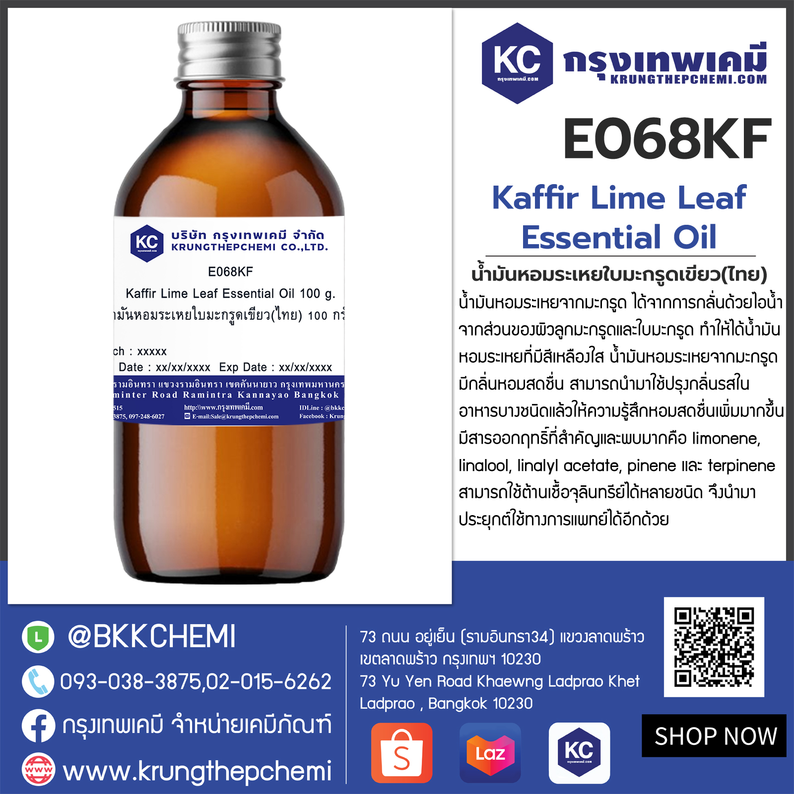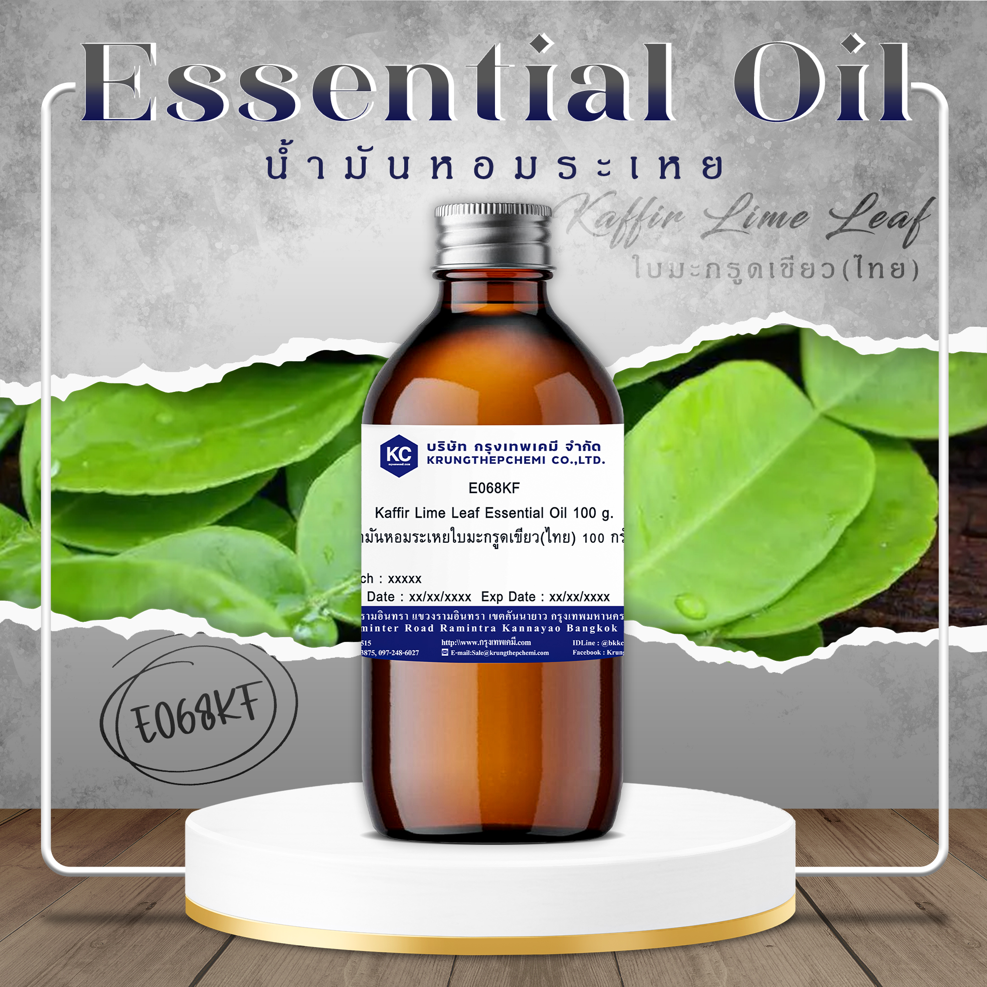 E068KF Kaffir Lime Leaf Essential Oil : น้ำมันหอมระเหยใบมะกรูดเขียว(ไทย)