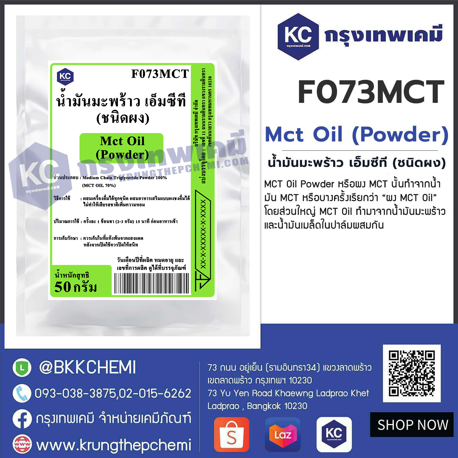 F073MCT Mct Oil (Powder) : น้ำมันมะพร้าว เอ็มซีที (ชนิดผง)