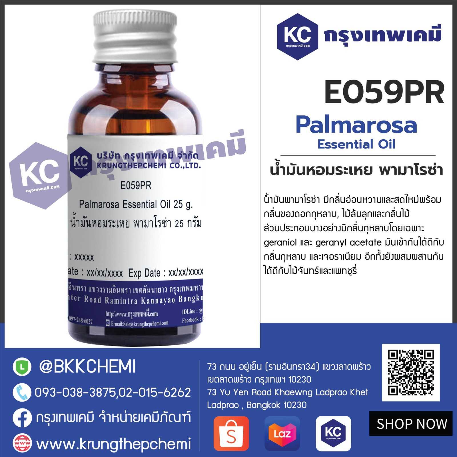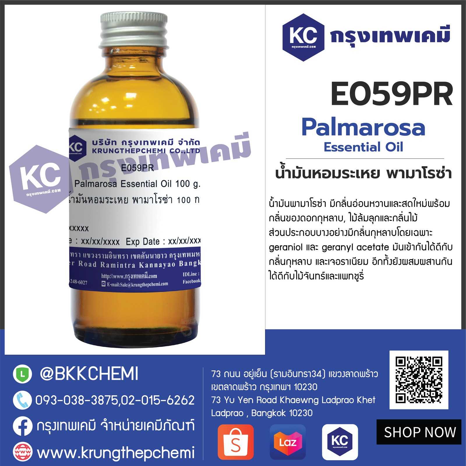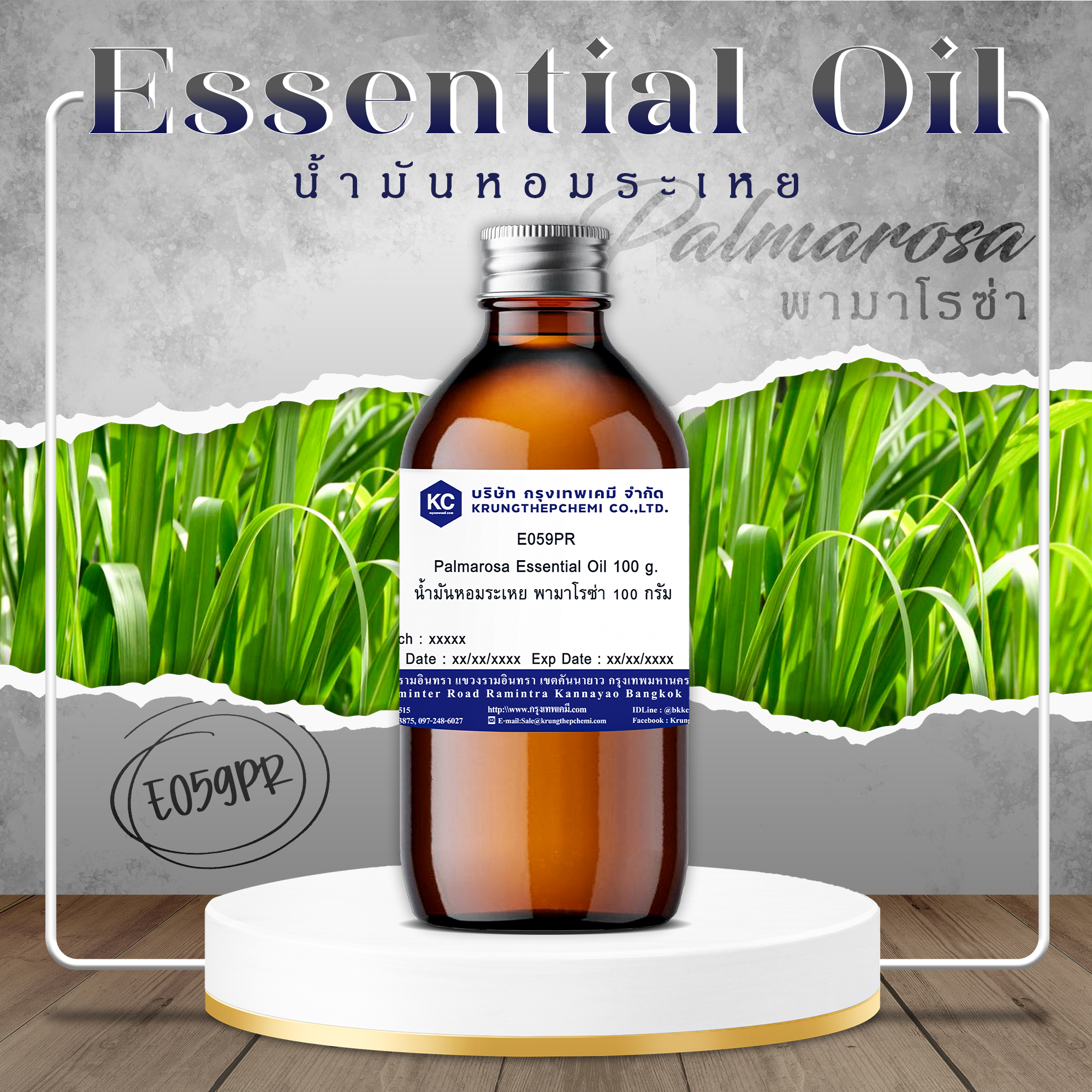 E059PR Palmarosa Essential Oil : น้ำมันหอมระเหย พามาโรซ่า