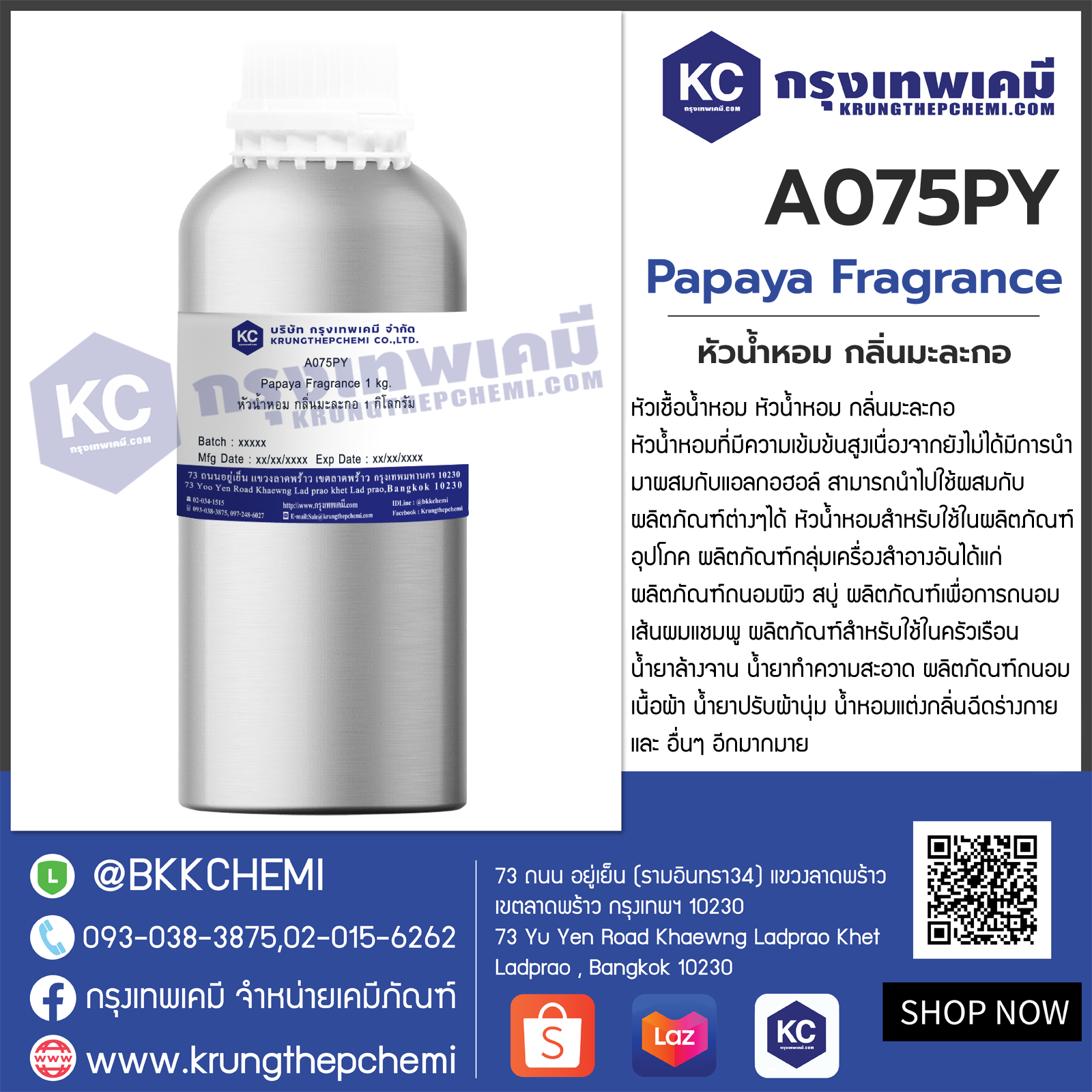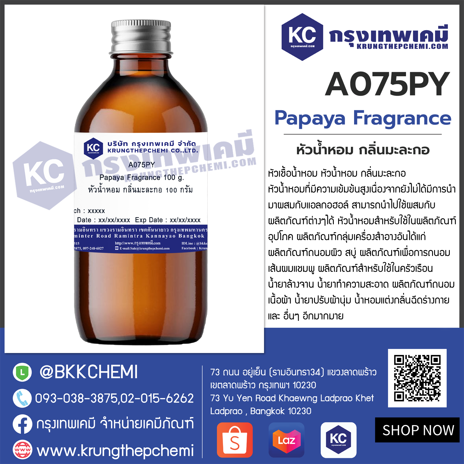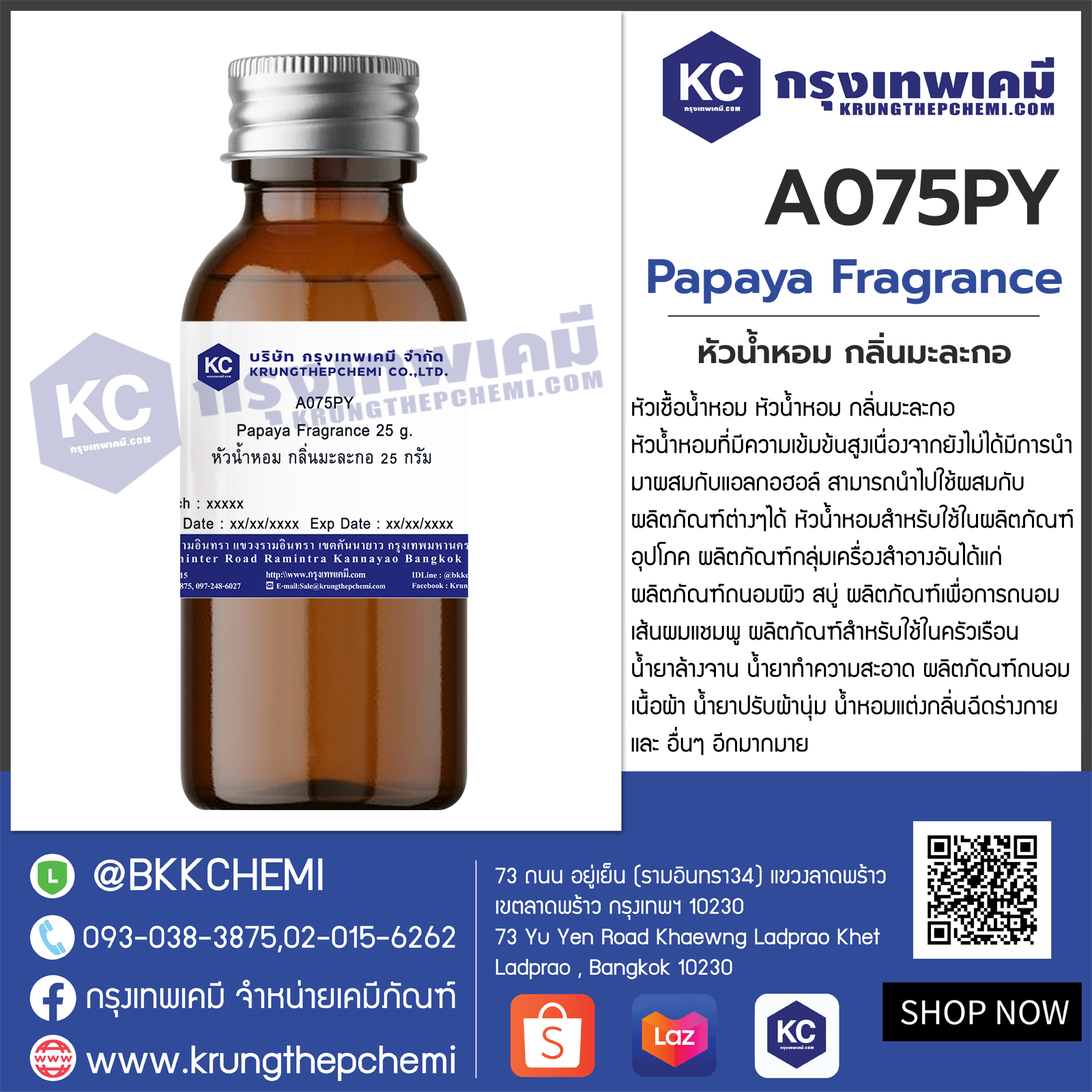 ชื่อทั่วไป : Papaya Fragrance (หัวน้ำหอม กลิ่นมะละกอ)