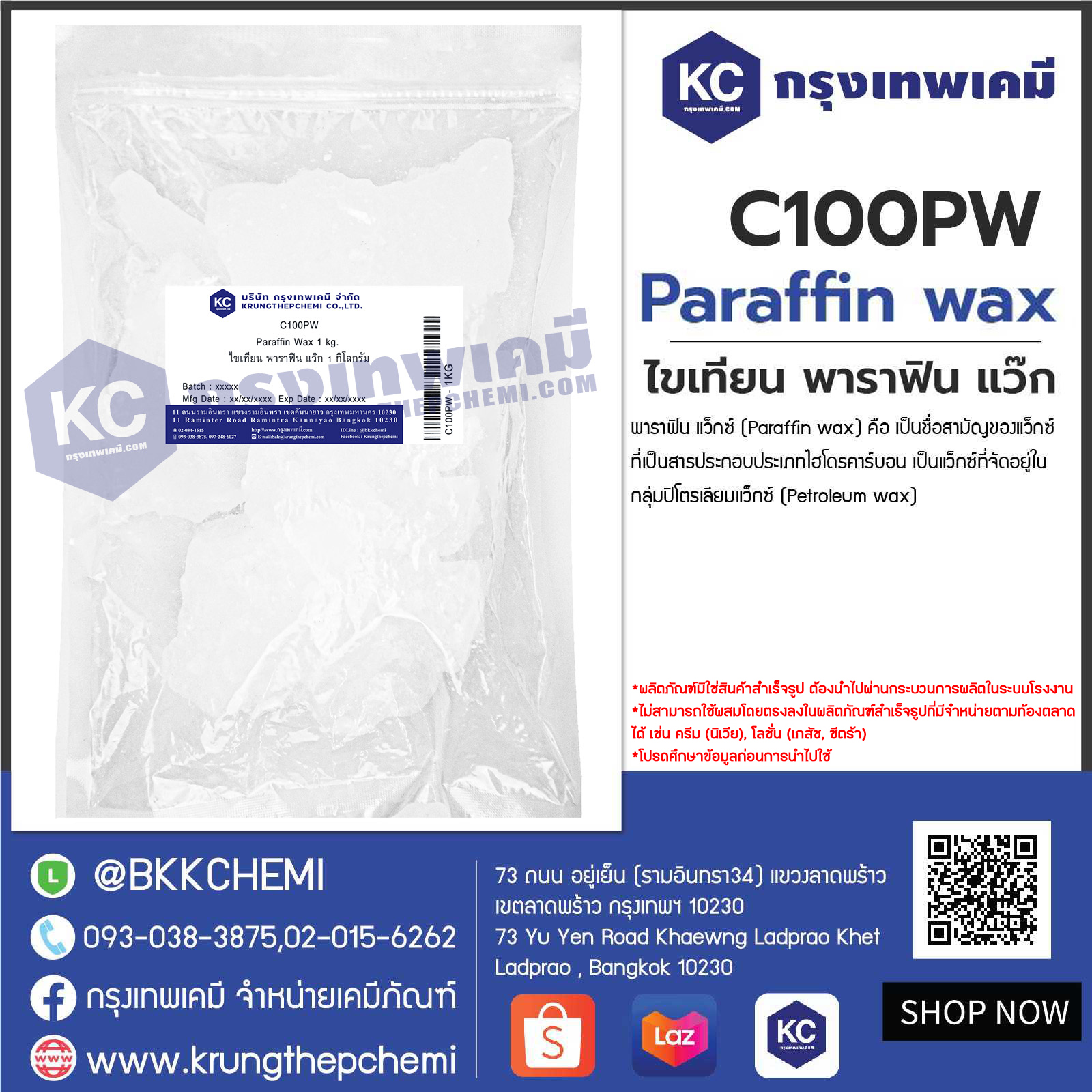C100PW Paraffin Wax (China) : ไขเทียน พาราฟิน แว๊ก (จีน)