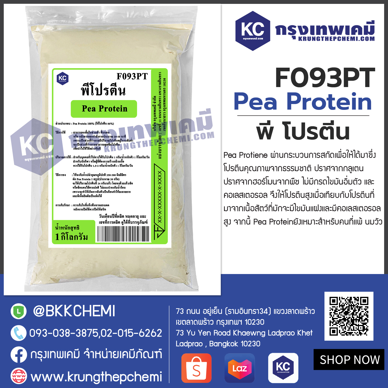 F093PT Pea Protein : พี โปรตีน (โปรตีนจาก ถั่วลันเตาสีทอง)