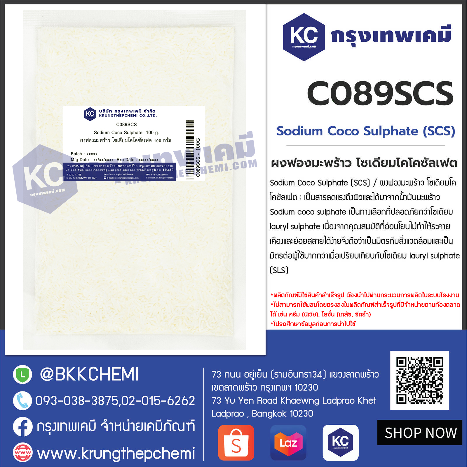 C089SCS Sodium Coco Sulphate (SCS) : ผงฟองมะพร้าว โซเดียมโคโคซัลเฟต (เอสซีเอส)
