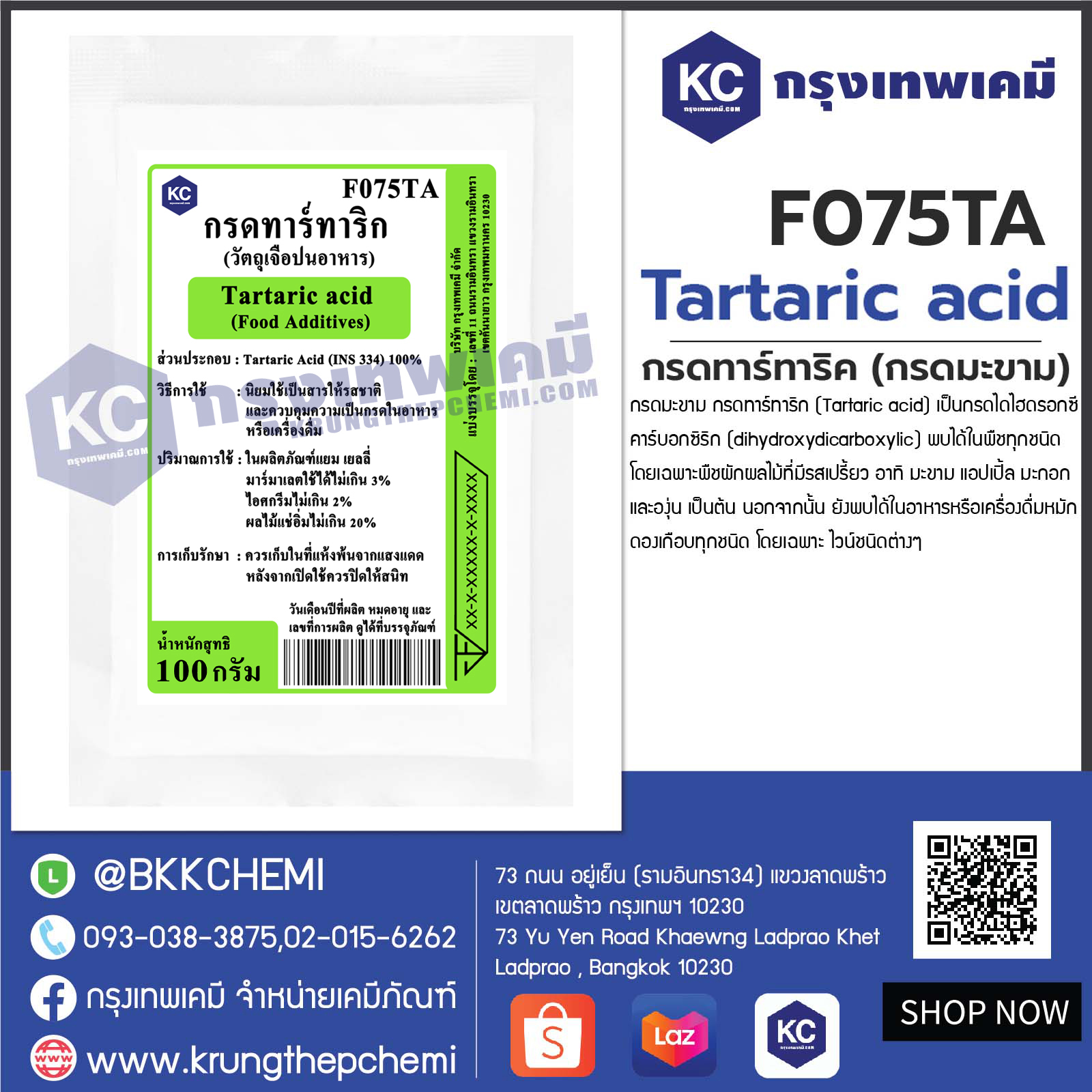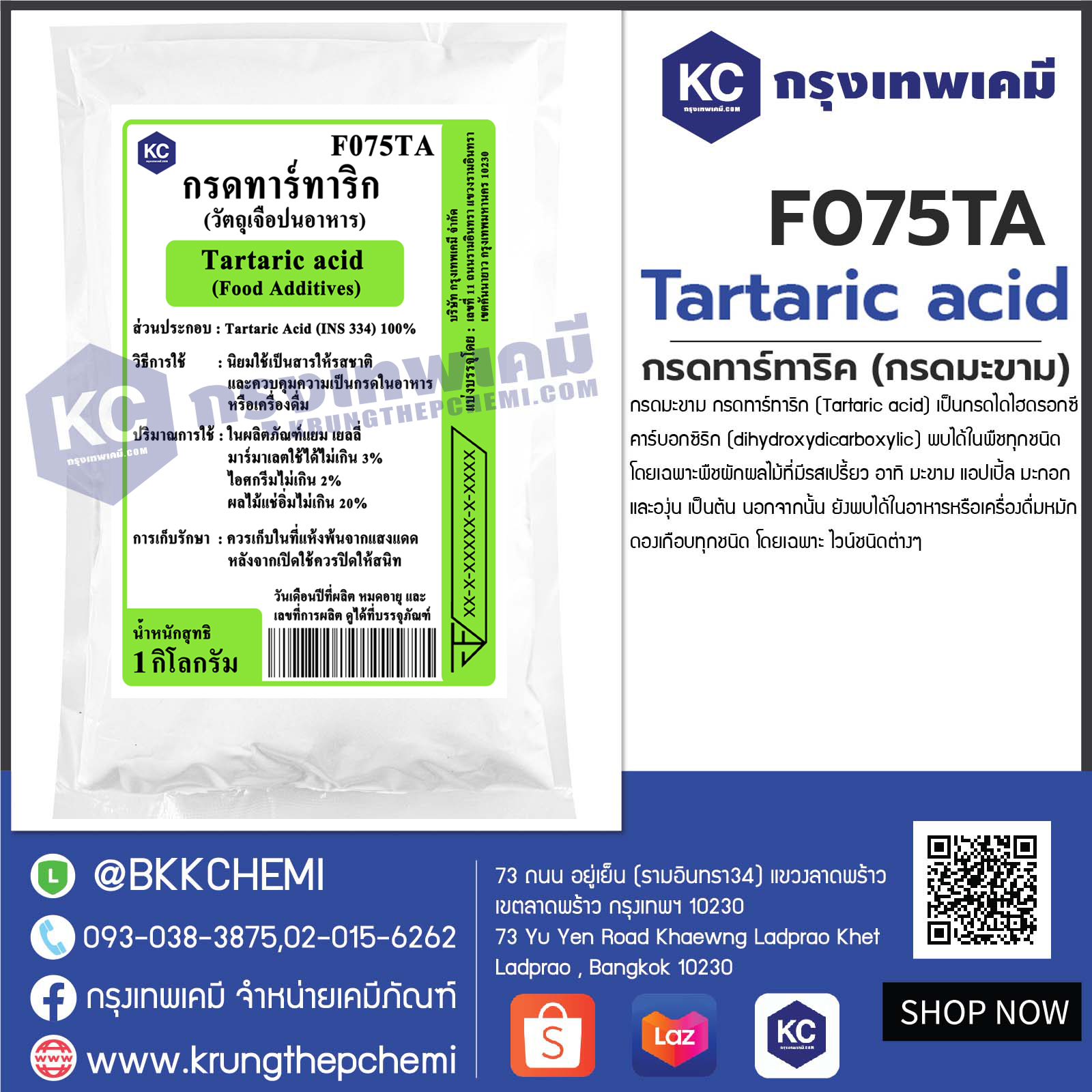 F075TA Tartaric acid (China) : กรดทาร์ทาริค (กรดมะขาม) (จีน)